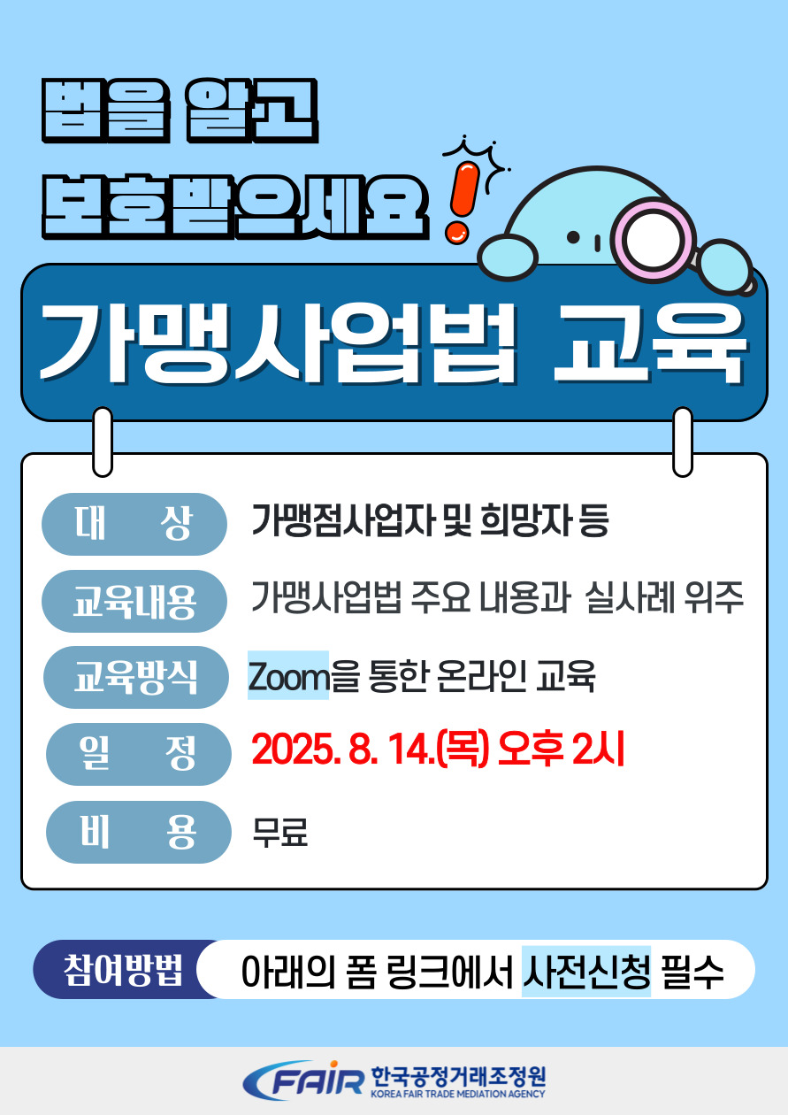 [알림]2025년 11월 하도급법 집합교육 모집(11/26 오후2시, 교육비 무료, 11/21 접수마감)